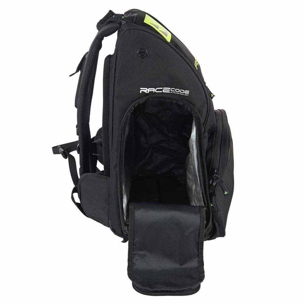 You’ll have 55 litres of space for everything you need on race day or at training sessions. Waterproof bottom and integrated rain cover let you drop it and leave it on the snow next to the track or on the hill with no worries. Gloves, hat, and sunglasses have a separate front compartment, and a separate pocket puts your water bottle within easy reach. Side pocket loading makes it easy to store and separate damp gear.