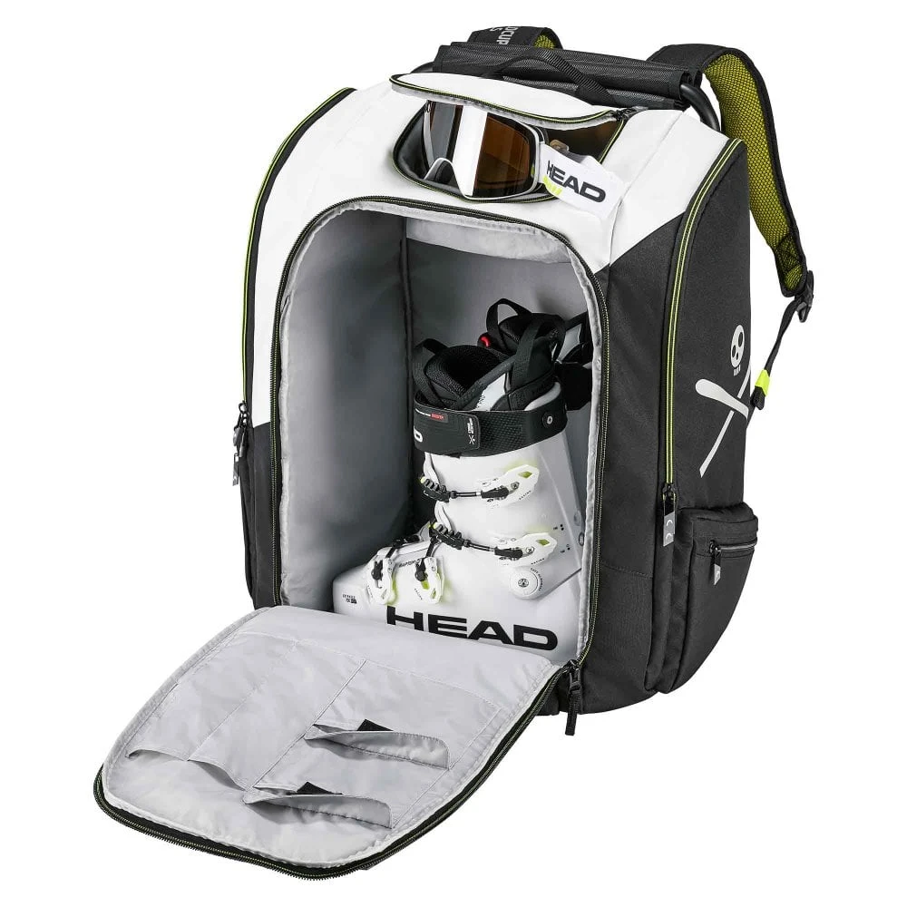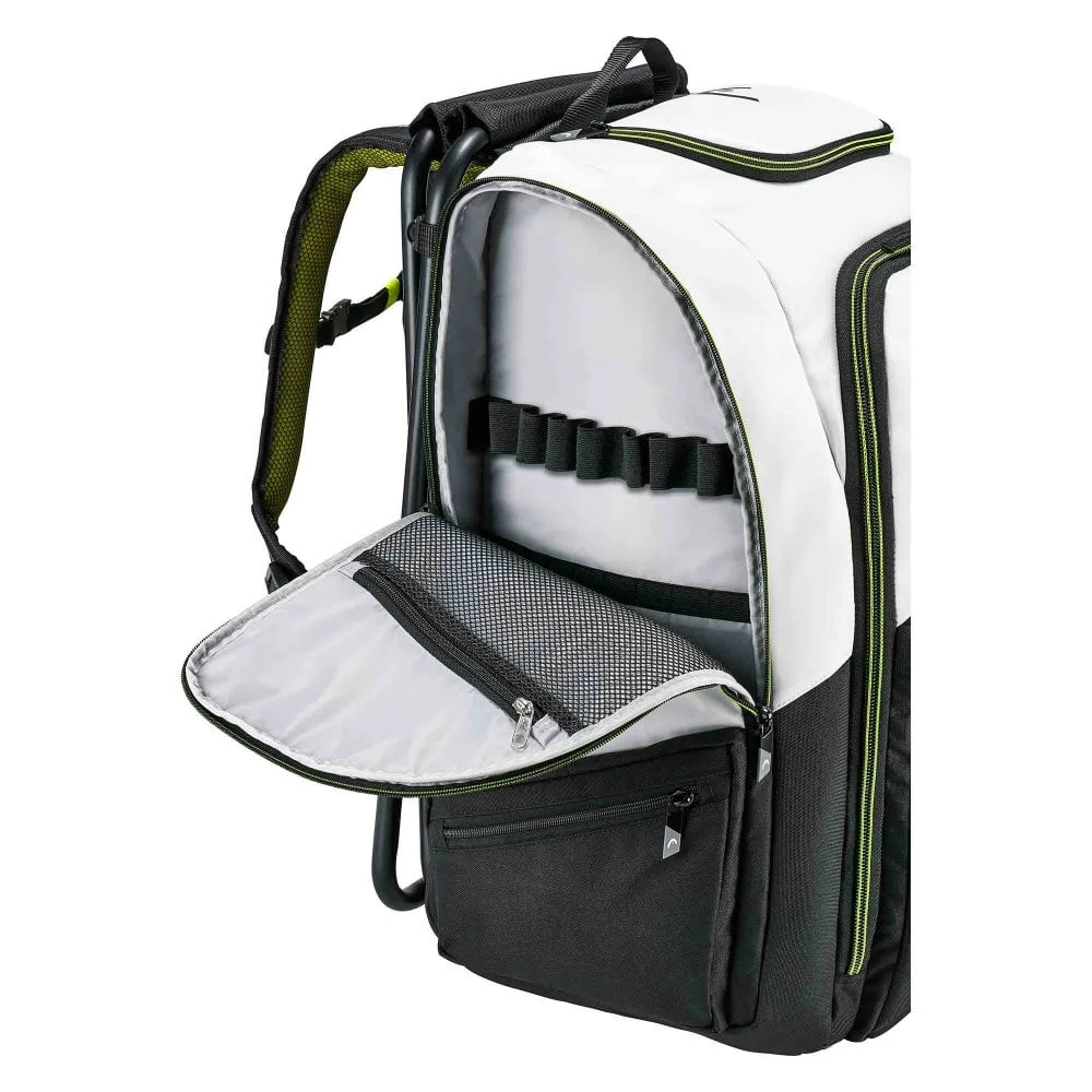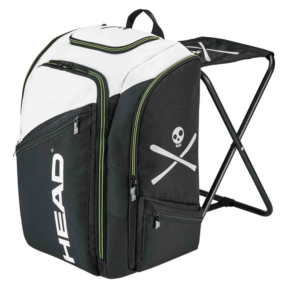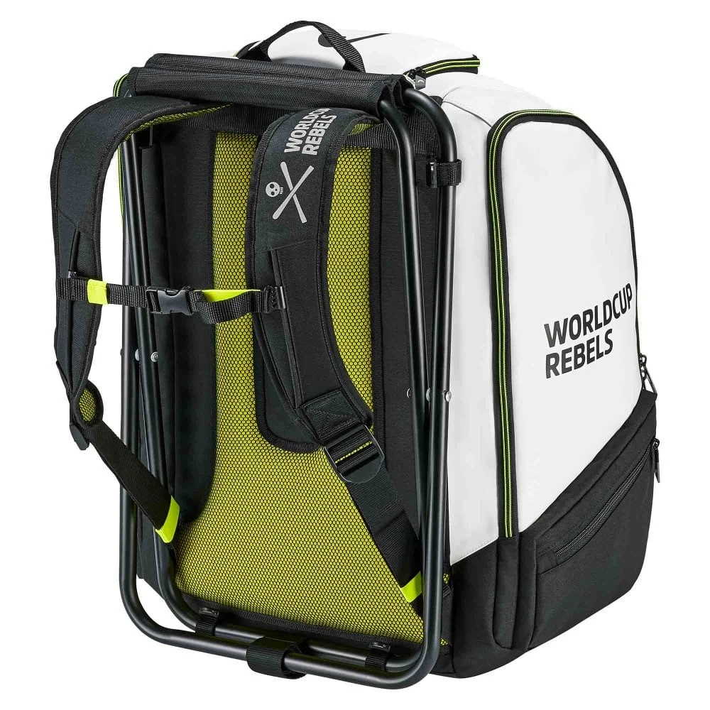 Race coaches need to be prepared at all times, so HEAD designers created the Rebels Coaches Backpack to suit their needs. Not only does the backpack provide ample room inside but small, internal pockets make space for valuables and accessories. Three strategically-placed exterior pockets, designed to anticipate every need on the hill, hold drill bits and screwdrivers. Durable outer material protects the Backpack from the elements, while sturdy straps and reliable zippers stand up to everyday use. The Coaches Backpack bonus? A foldable chair for long days on the course.