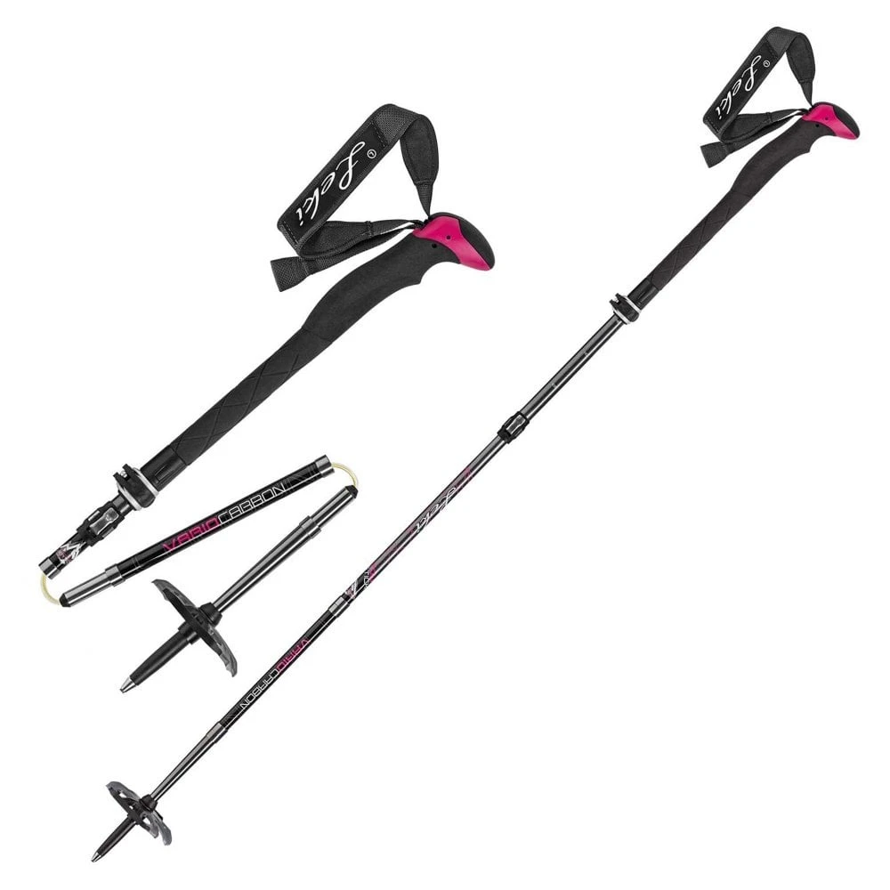 Leki Tourstick Vario Carbon Lady ski poles are women’s version of the extremely versatile “Vario Carbon” ski touring pole that impresses with a small pack size of 38 cm and a chic, feminine design. The new ELD design promises even more stability and safety and allows lightning-fast folding or tensioning of the pole. As with the men’s version, the pole has the Speed Lock 2 system for easy length adjustment, straps with neoprene, and a Binding Basket which can be used to adjust the heel lifter.