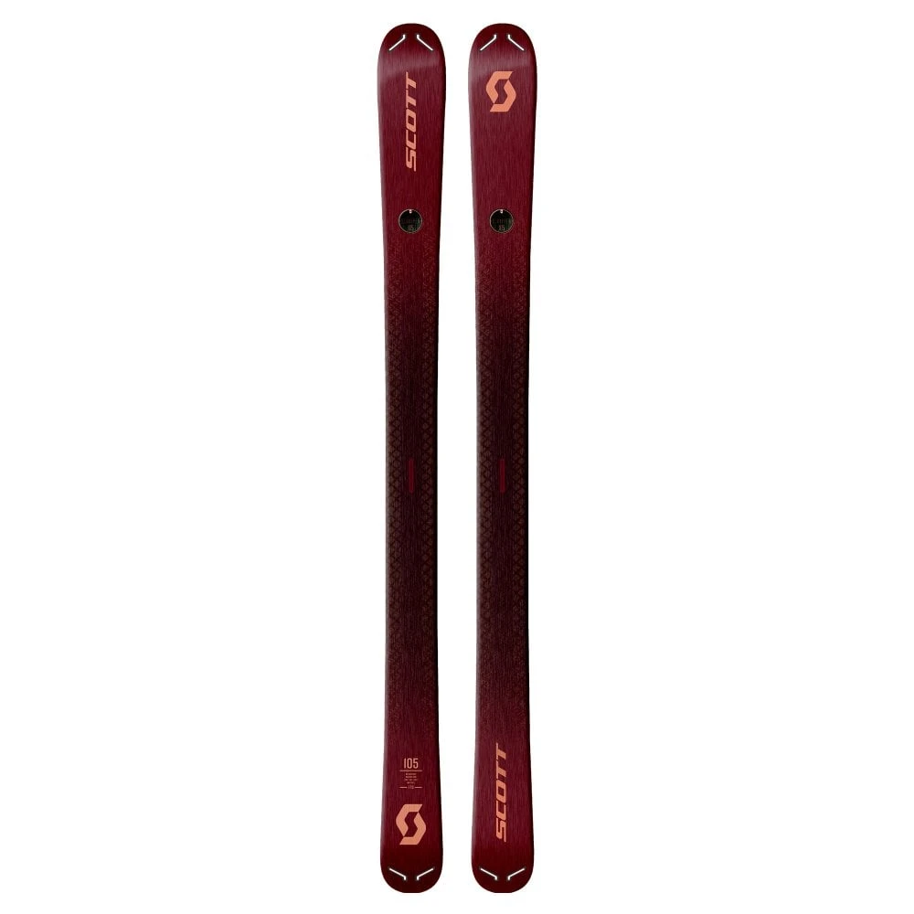 The Scrapper 105 women’s ski is the new go-to choice for progressive all-mountain skiers. With a full length elliptic wood core, unidirectional and triaxial carbon stringers, and Scott’s 3Dimension sidecut, the Scrapper 105 W has been engineered to increase stability and shed weight. The women specific version of the Scrapper 105 is built with an air channeled wood core for a softer and lighter set-up whilst remaining a playful ski that performs in a variety of conditions.Â