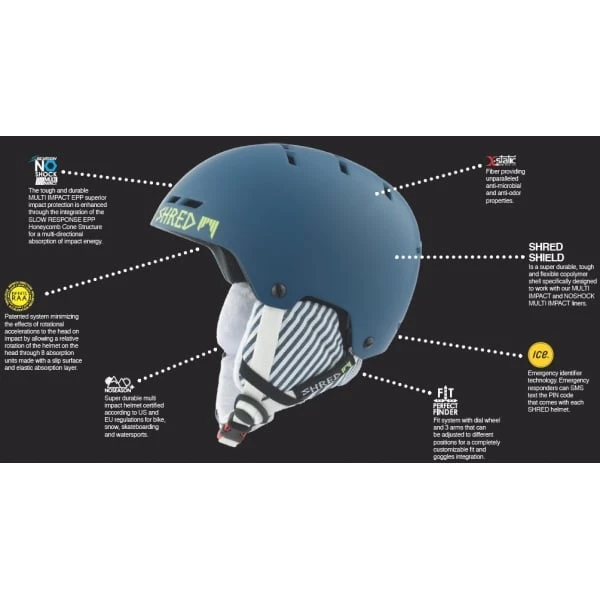 Shred Bumper helmets are one of the only helmets on the market to be fully certified for skiing, biking, skateboarding and watersports – one helmet that can do everything. Just remove the earpieces and any unwanted padding and you have a superb multi-sport helmet.